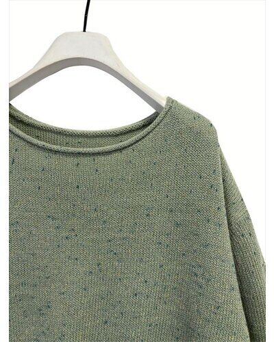 広めのボートネックで抜け感もある女性らしいニットになっています。