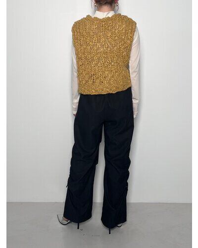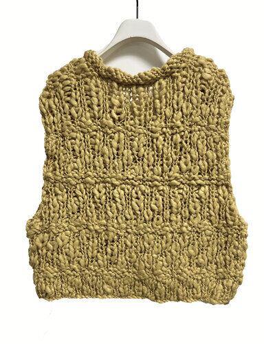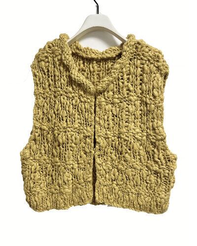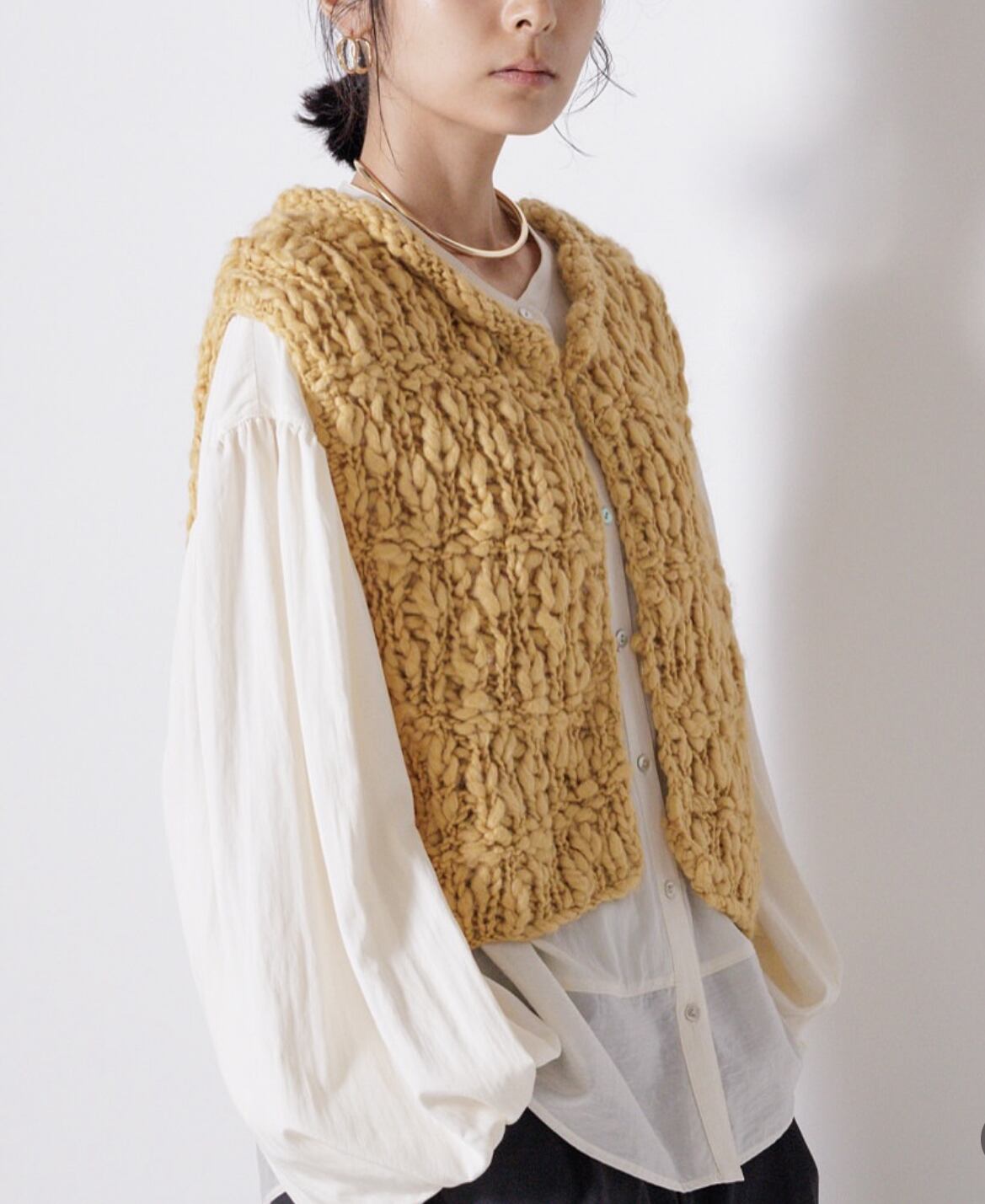 ぽこぽこしたアクリルウールの糸が特徴のプラスワンベスト。