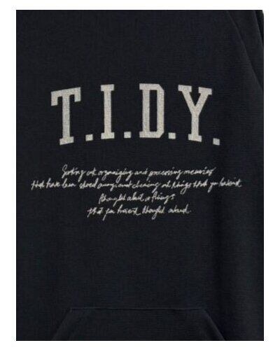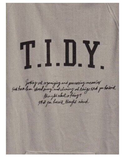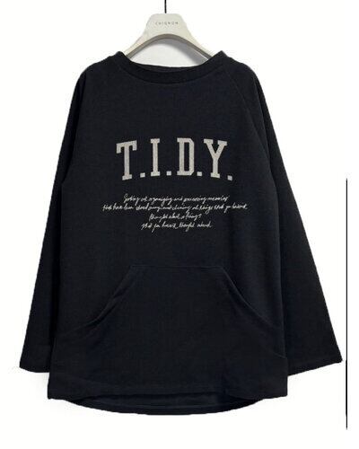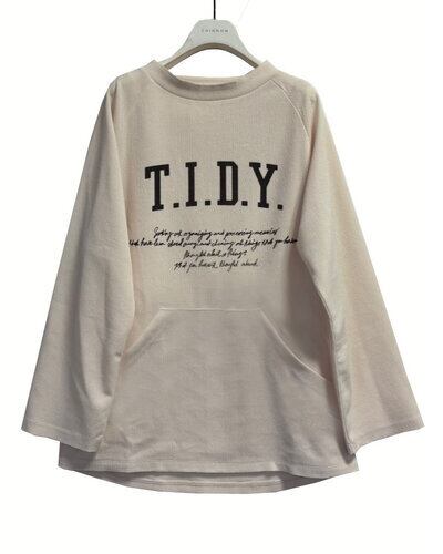 大きくデザインされた「T.I.D.Y.」のロゴが印象的な、カジュアルムードたっぷりのチュニック丈プルオーバー。手書き風フォントで描かれた英字プリントが、さりげなく個性を演出してくれます。柔らかく凹凸感のあるカットソー生地を使用し、軽やかな着心地を実現。体のラインを拾いにくいややAラインのシルエットで、リラクシーながらもきちんと感をキープ。大きめのカンガルーポケットもポイントです。