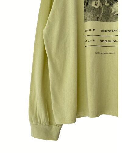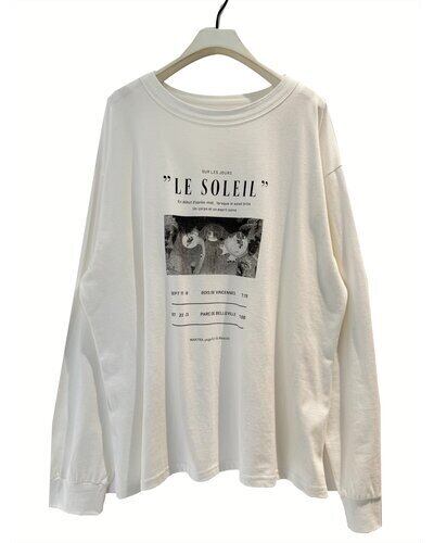 モノクロ写真とフランス語の組み合わせが、どこかアートな雰囲気を醸し出し、大人のカジュアルスタイルにぴったり。デニムやワイドパンツと合わせてラフに、スカートと合わせてちょっぴり甘めにも着こなせます。