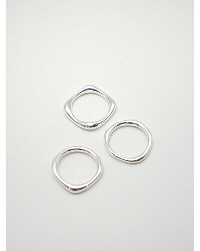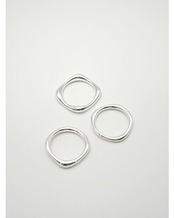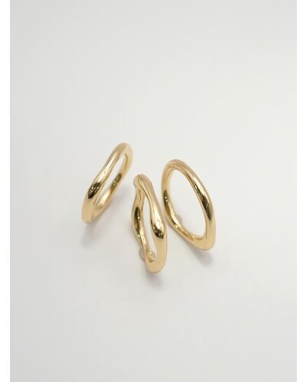 抑揚のある線が特徴的なニュアンスリング3本セットは場所によって形が違うのでお好みの位置に回して付けたり、3本まとめて着けたり、それぞれの小指に2本と1本ずつ着けたり、お手持ちのリングとレイヤー使いしたりと様々な着け方を愉しめます。小ぶりで手元に馴染みやすく、存在感のある有機的ラインは着けるだけで手元にアクセントを加えてくれます。