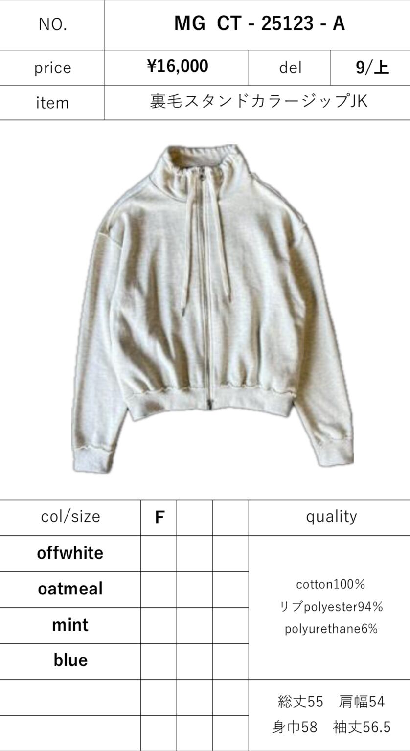 予約販売【 MARGAUX 】裏毛スタンドカラージップJK (CT - 25123 - A ) 9月中旬入荷発送予定