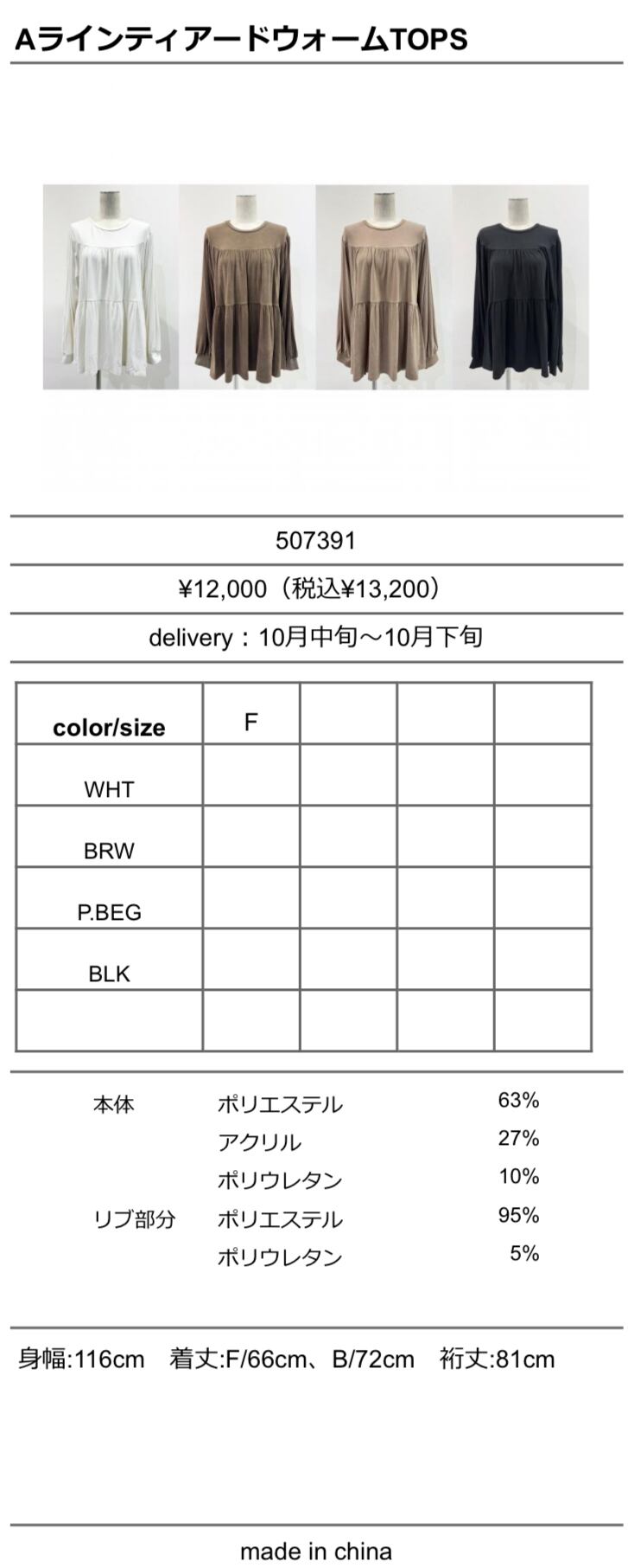 予約販売【 CYAN TOKYO 】AラインティアードウォームTOPS (507391) 10月下旬頃入荷