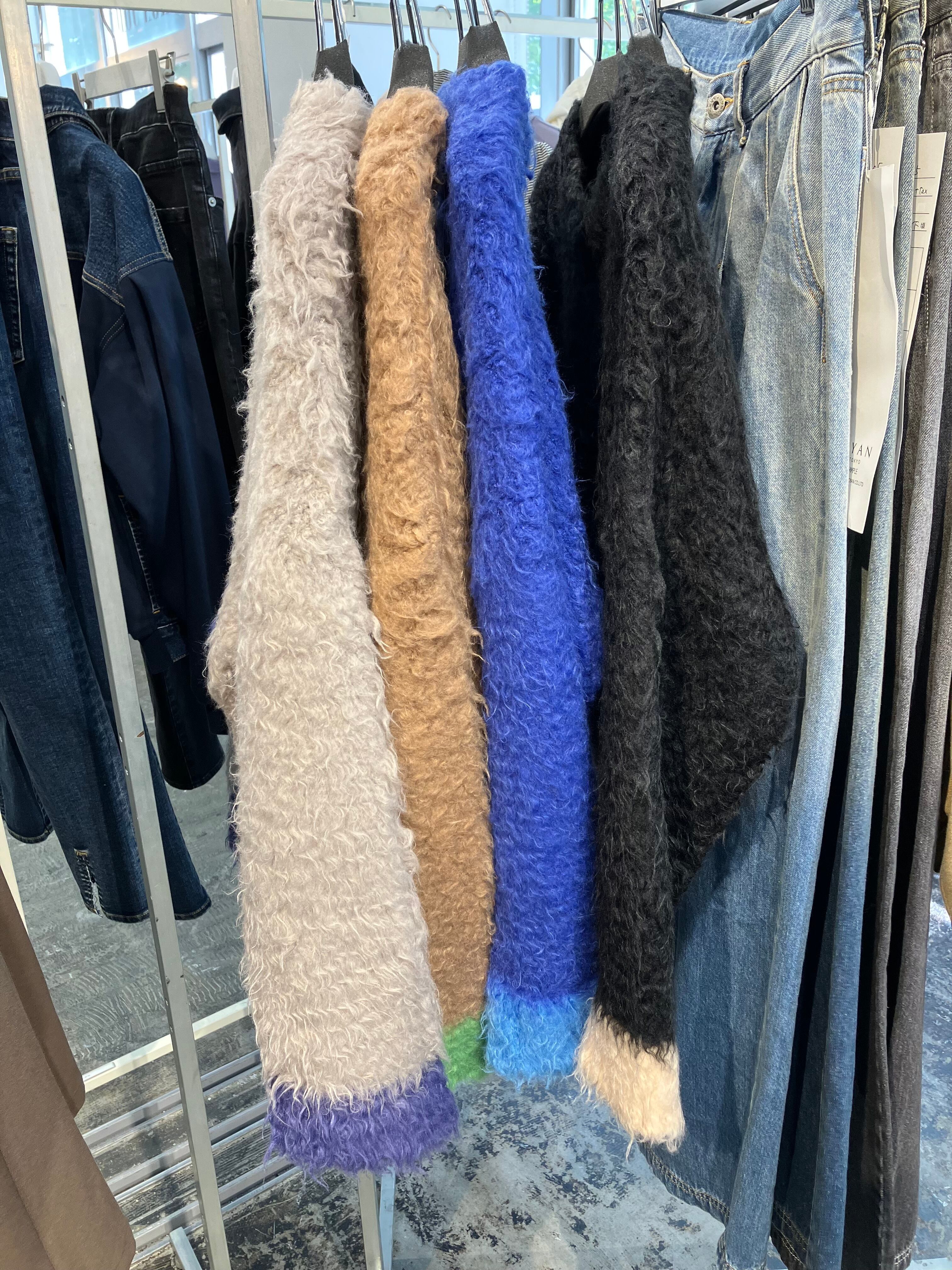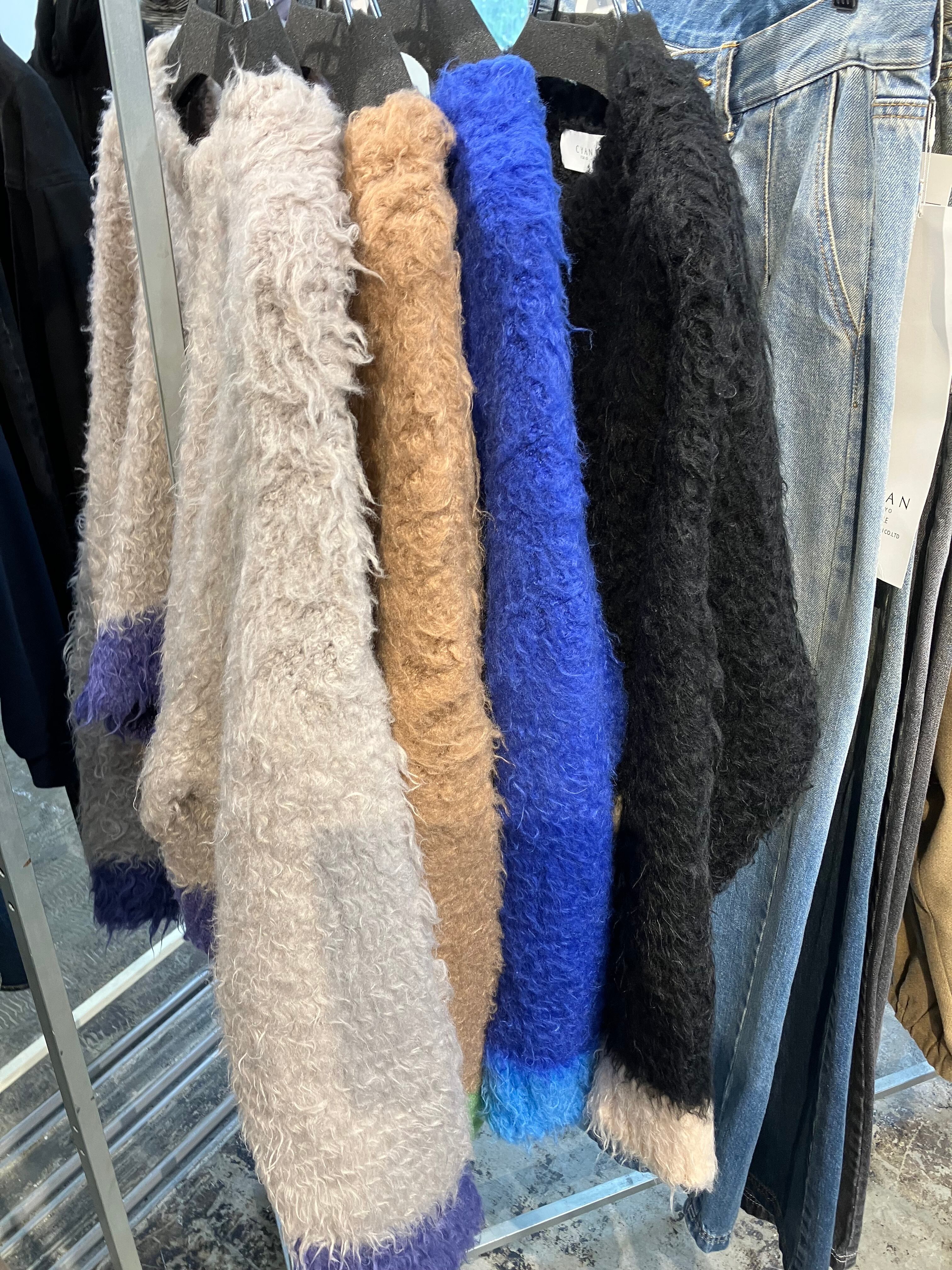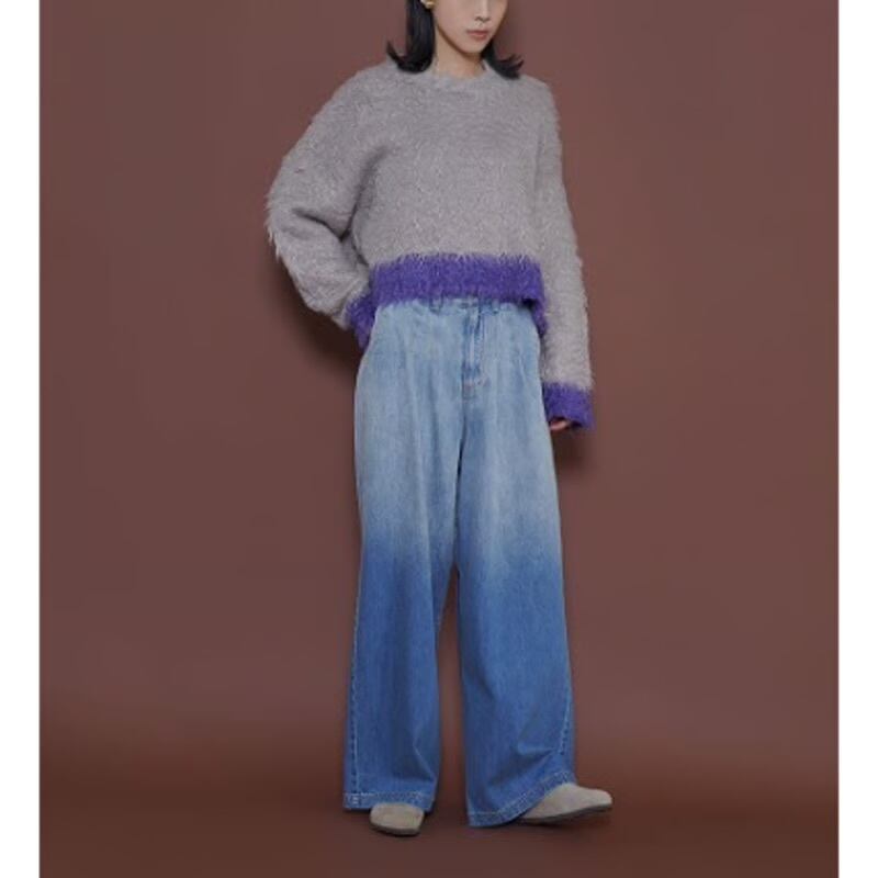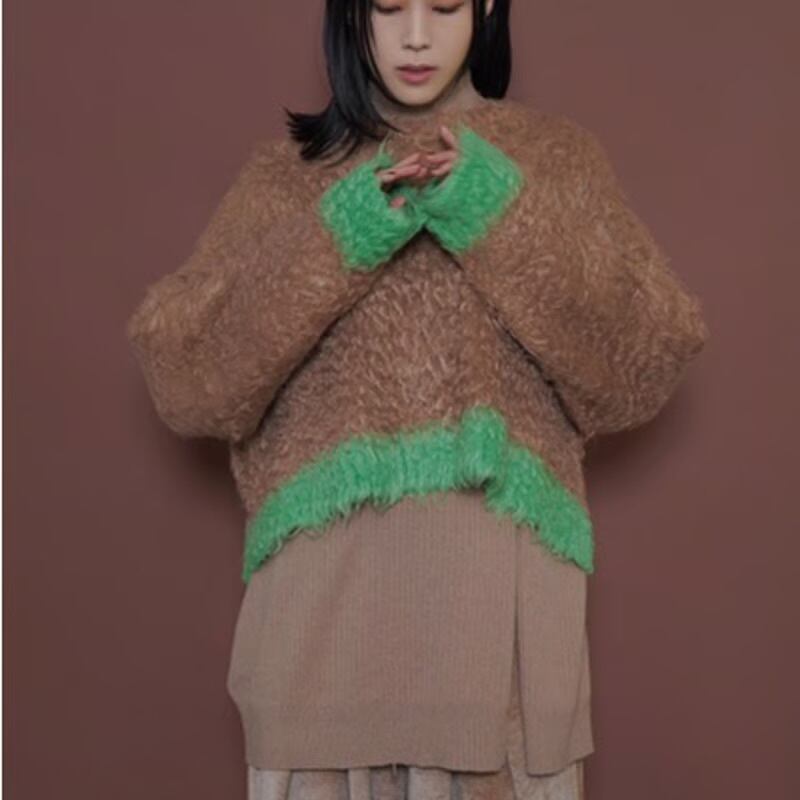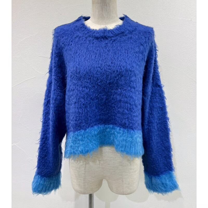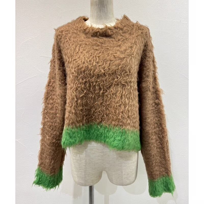 予約販売【 CYAN TOKYO 】配色カーリーショートニット (507416) 10月下旬頃入荷