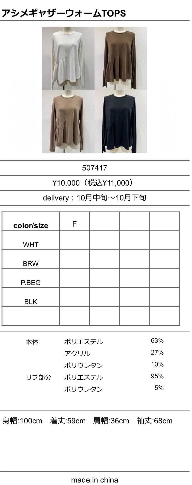 予約販売【 CYAN TOKYO 】アシメギャザーウォームTOPS (507417) 10月下旬頃入荷