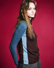 ・伸縮性のある柔らかな薄手のニットTOPS。