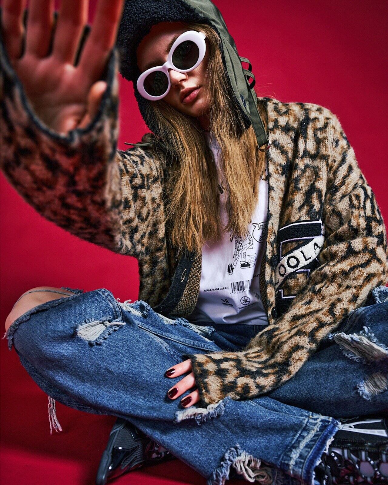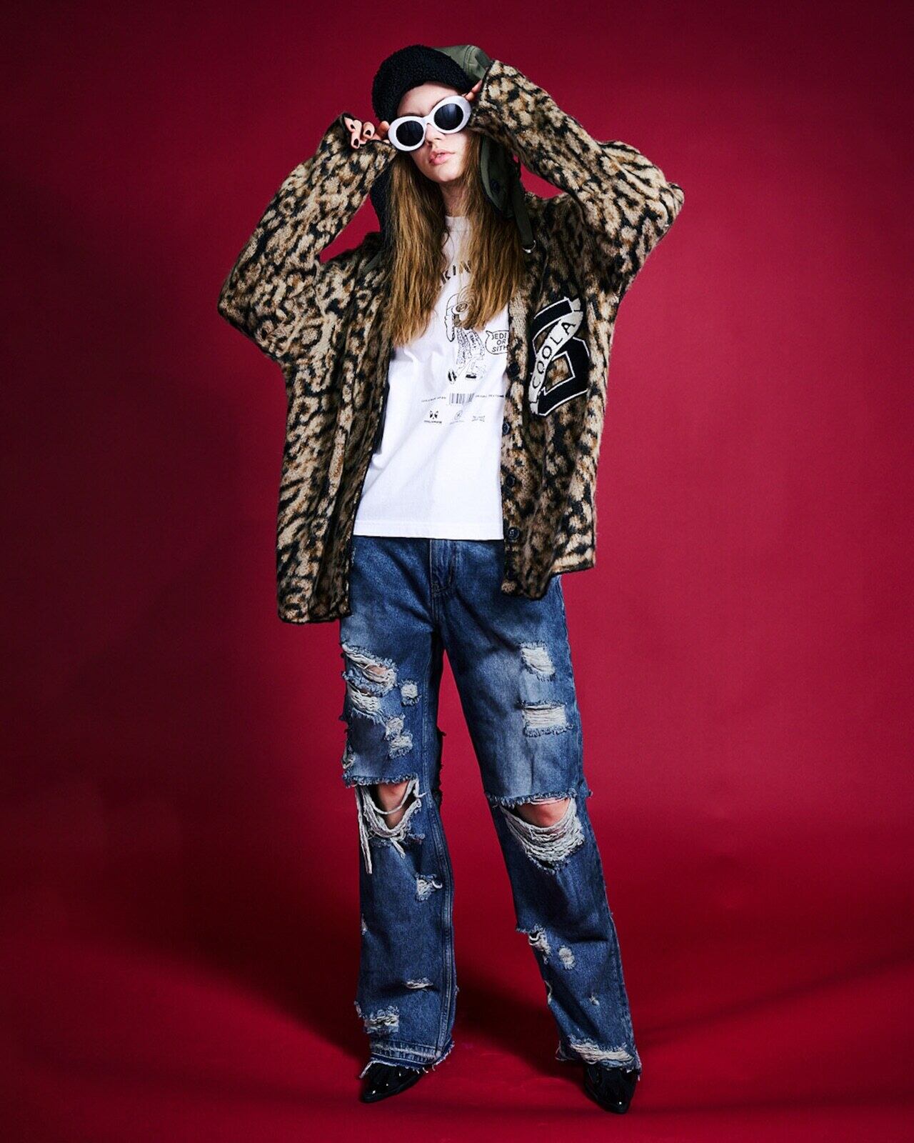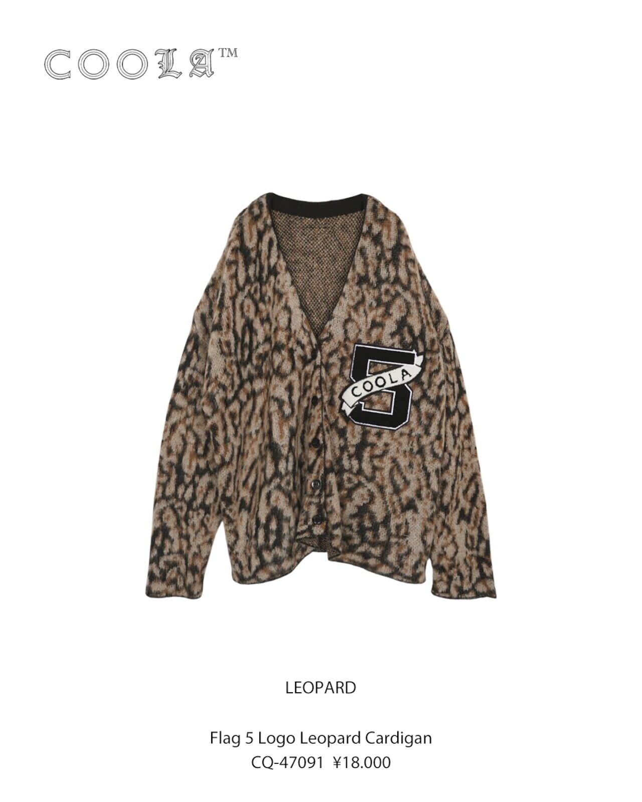 予約販売【 COOLA 】CQ-47091 Flag 5 Logo Leopard Cardigan 10月下旬〜11月上旬入荷お届け