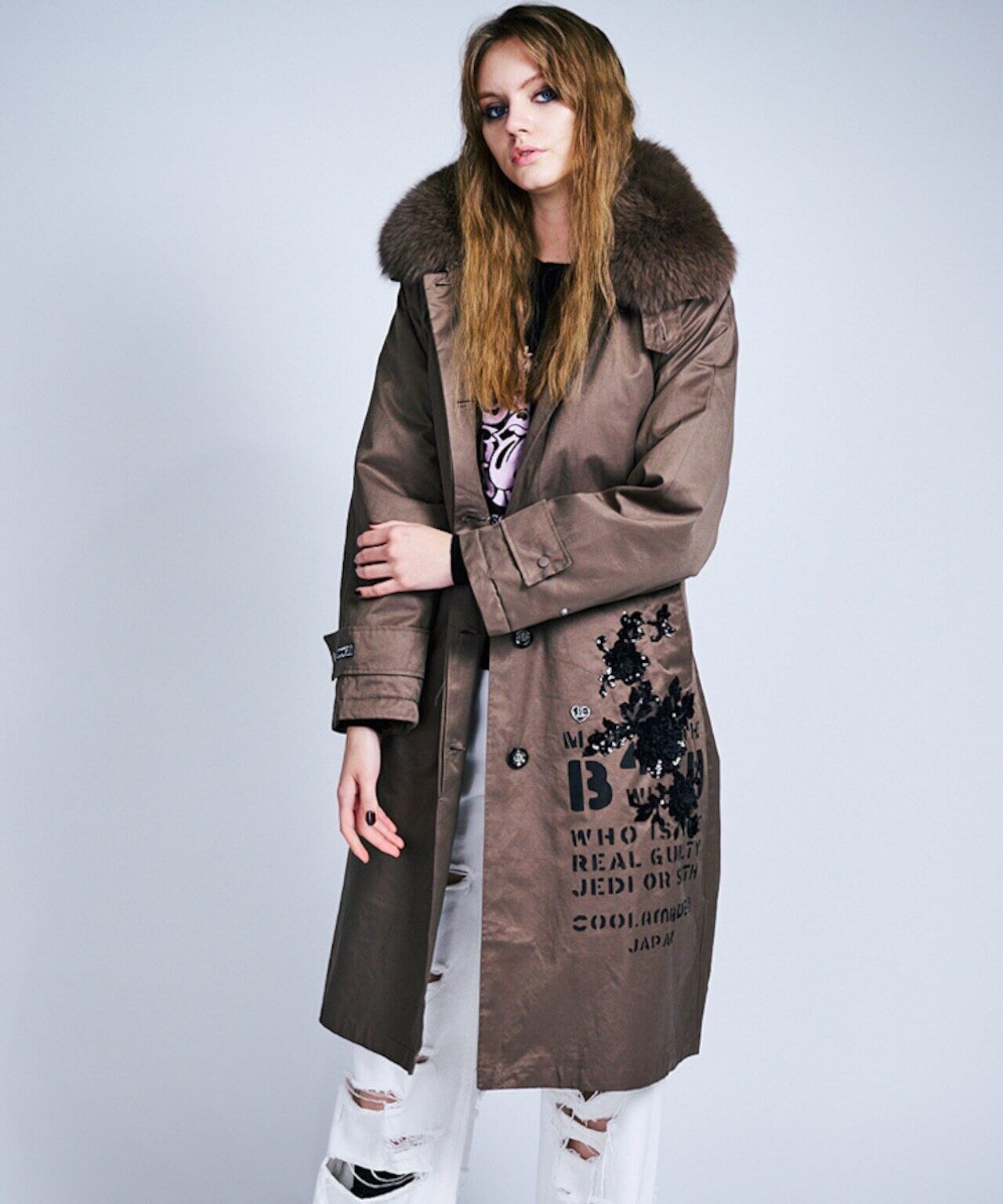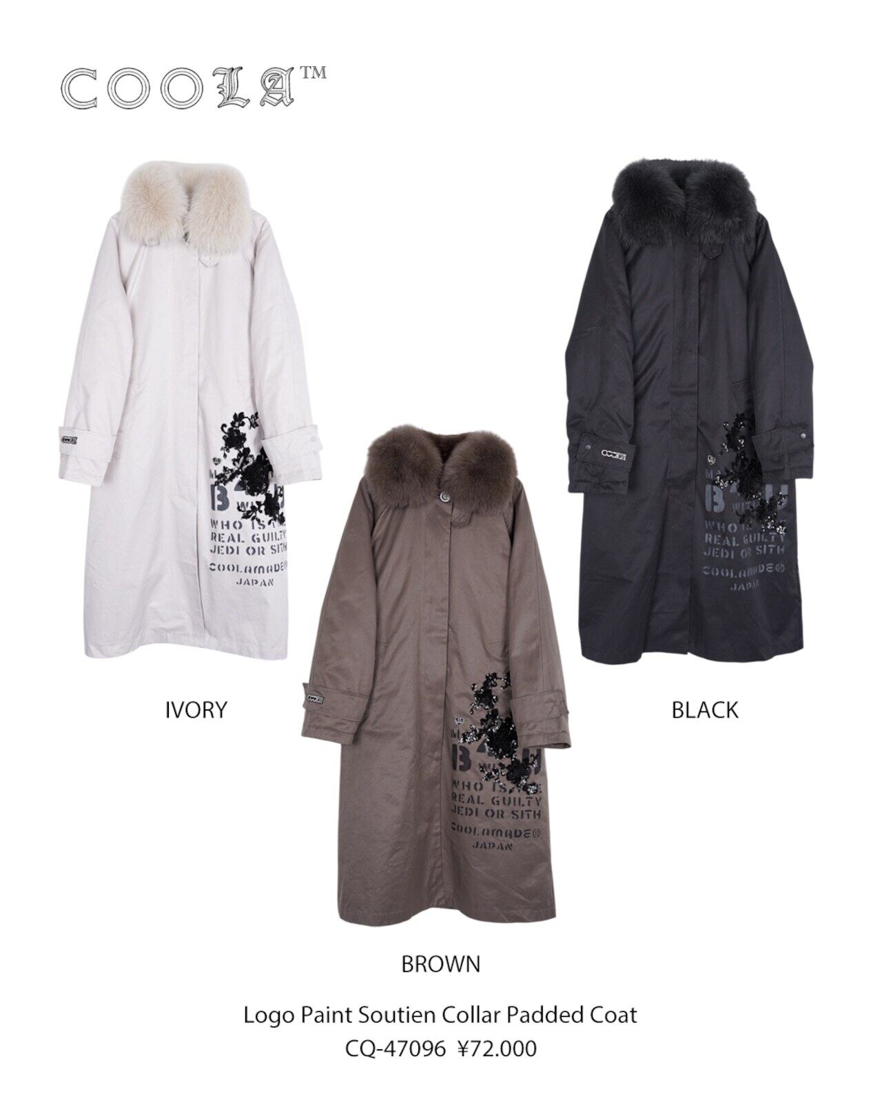 予約販売【 COOLA 】 CQ-47096 Logo Paint Soutien Collar Padded Coat 10月下旬〜11月上旬入荷お届け