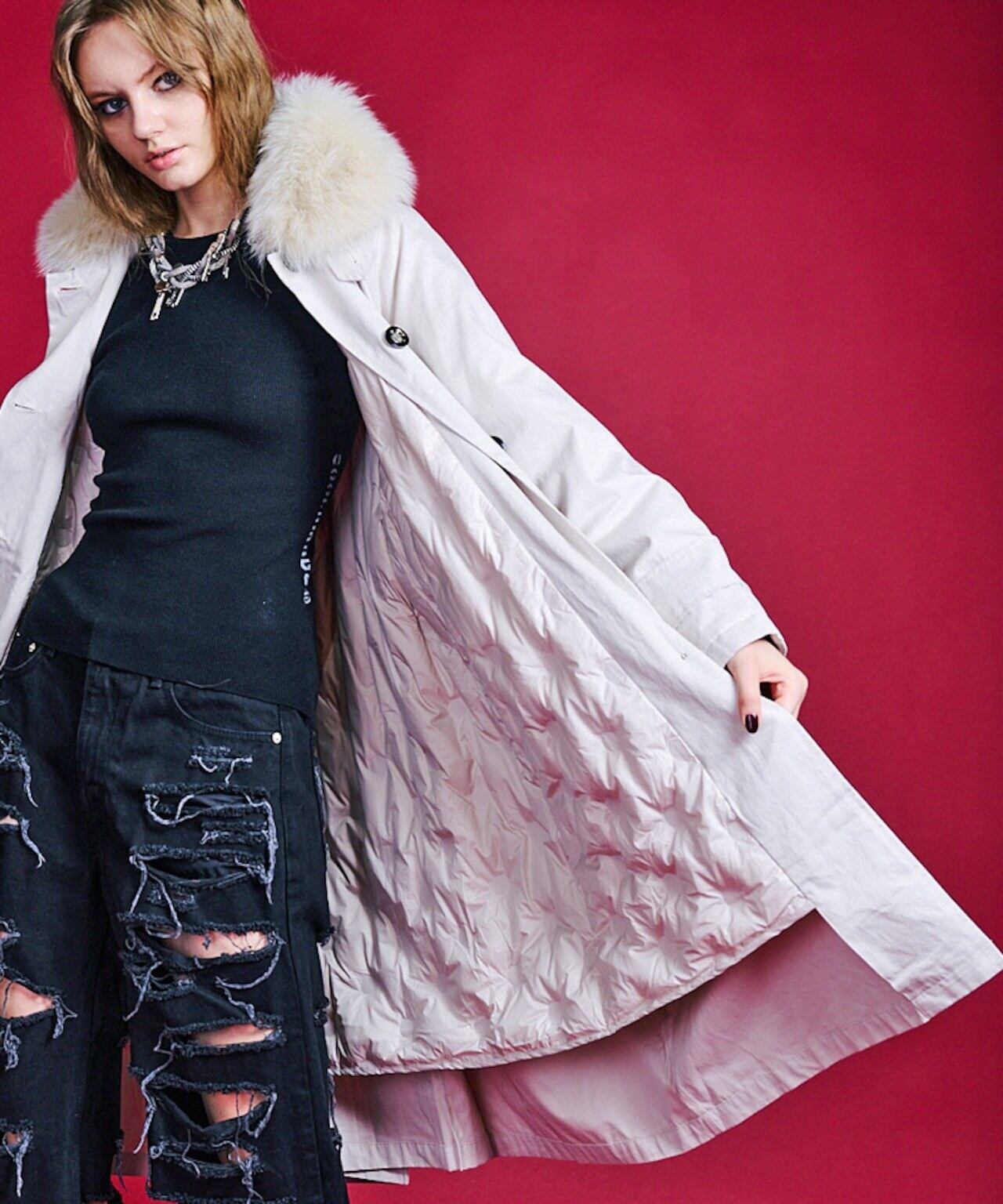 ・トレンドのステンカラーコートなので、