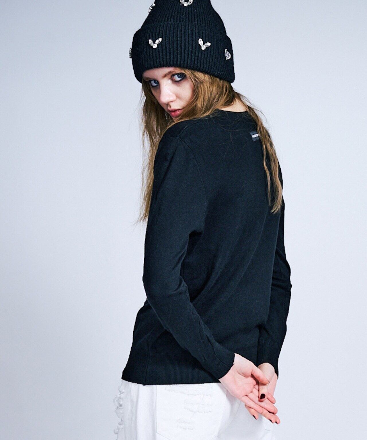 ・伸縮性のある柔らかな薄手のニットTOPS。