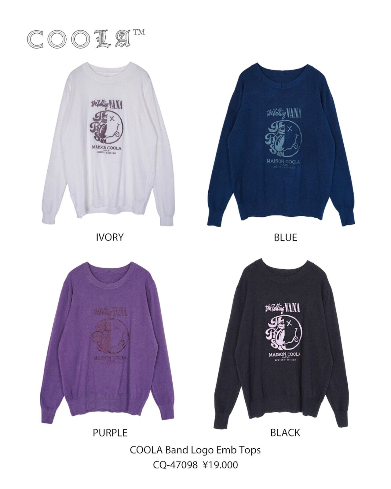 予約販売【 COOLA 】CQ-47098 COOLA Band Logo Emb Tops 10月下旬〜11月上旬入荷お届け