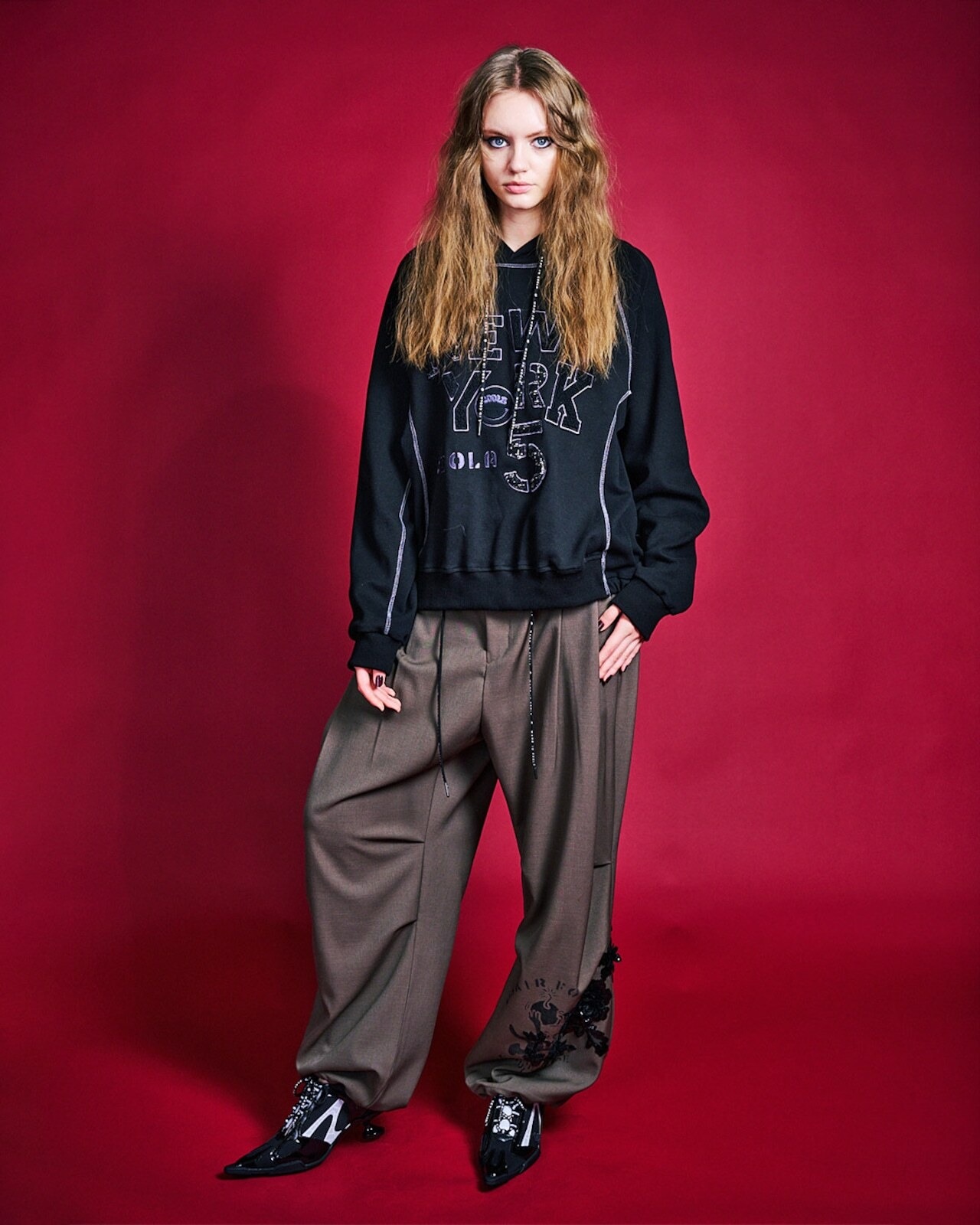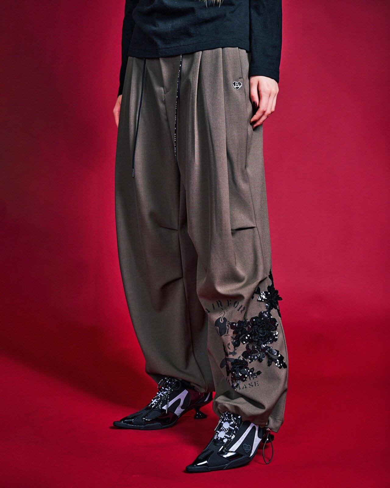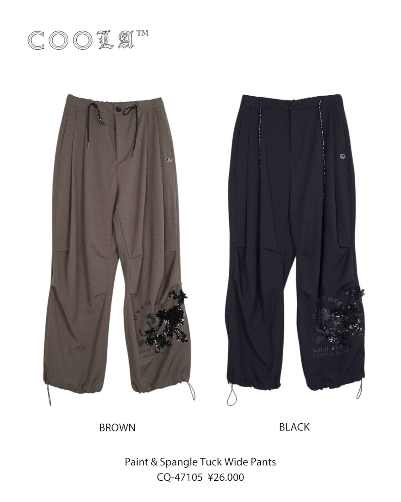 予約販売【 COOLA 】CQ-47105 Paint & Spangle Tuck Wide Pants 10月下旬〜11月上旬入荷お届け