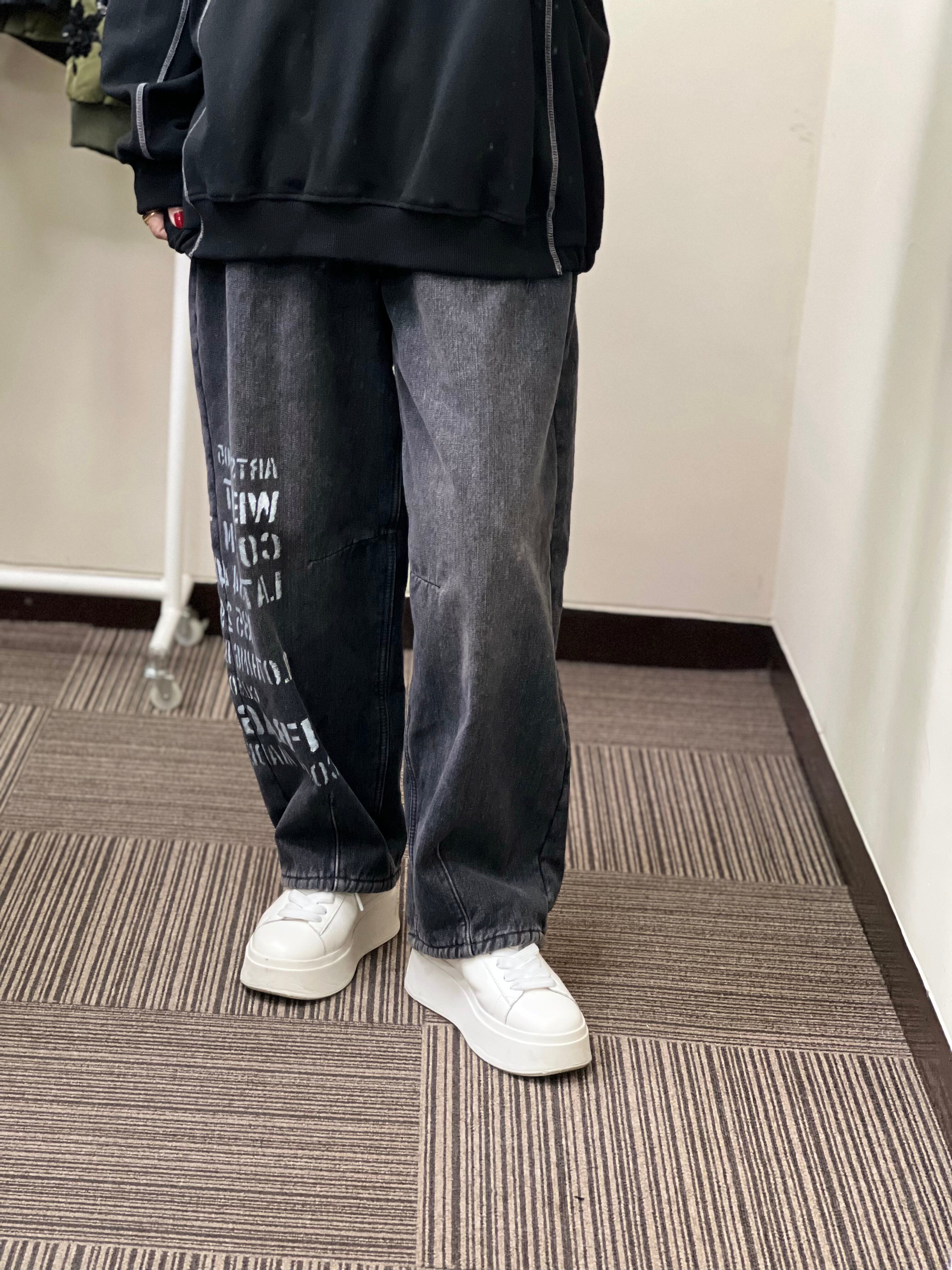 Fleece Lining Denim Curve Pants