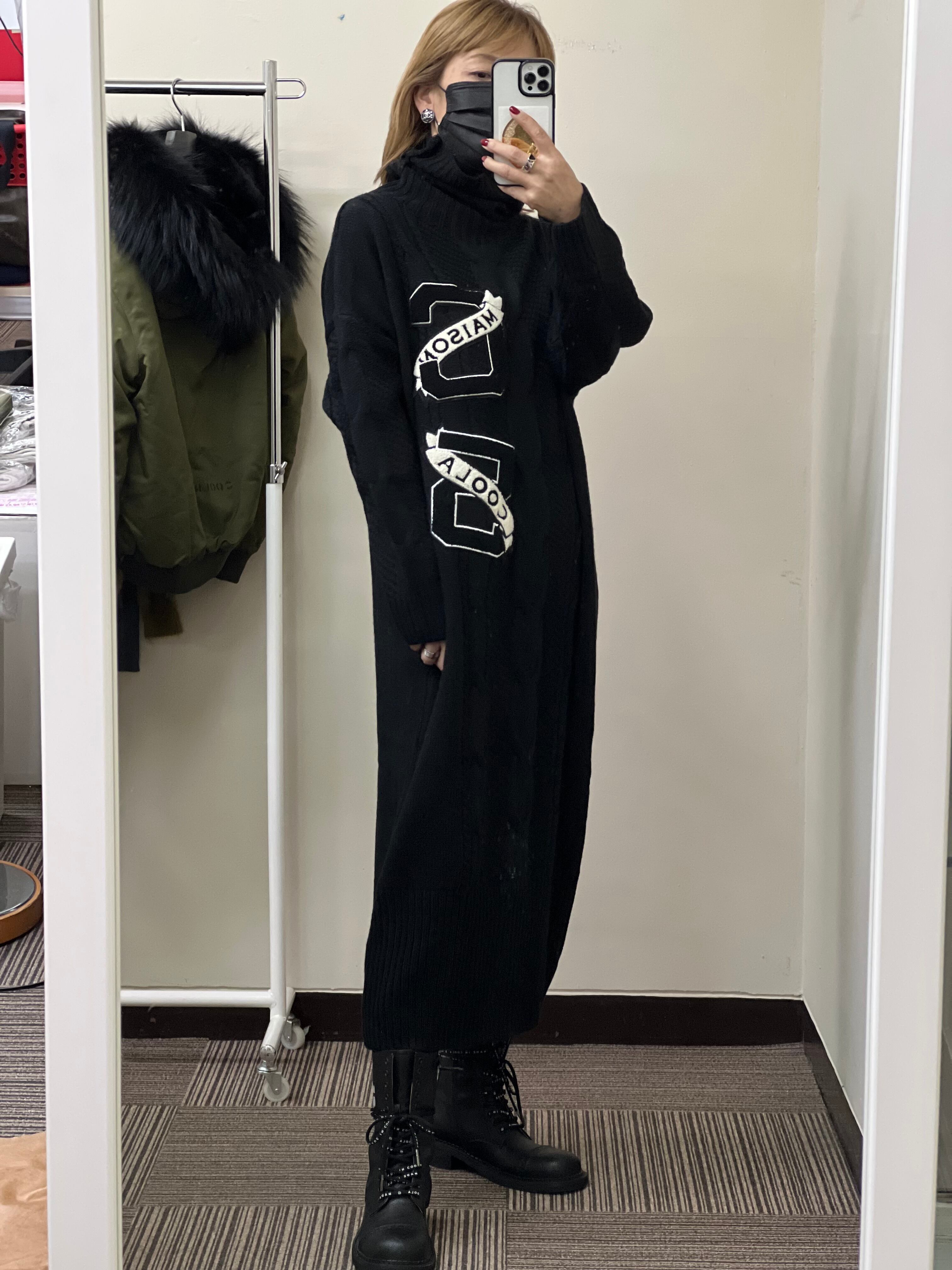 予約販売【 COOLA 】CQ-47114 Flag Logo Long Knit Dress 11月上旬〜中旬入荷お届け