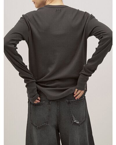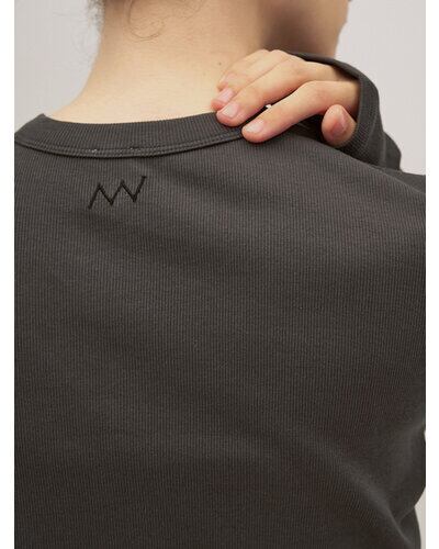 繊細な綿素材のリブ生地を使用。通常の糸と比較して格段に毛羽が少なく、シルクのような光沢や滑らかさがでるというのが特徴のコンパクトヤーンを使用したリブ生地を採用、上品な滑らかさのあるコットンリブは肌さわりも良くおすすめです。 程よく体に沿うようにデザインされているので、レイヤードのインナーにも最適です。 後衿ぐりに施したワンポイント刺繍もほどよいアクセントに。 衿ぐりはあえて狭く設定、ニットやシャツの下に着たときに衿ぐりからTシャツを覗かせるスタイリングがおすすめの着こなしです。