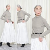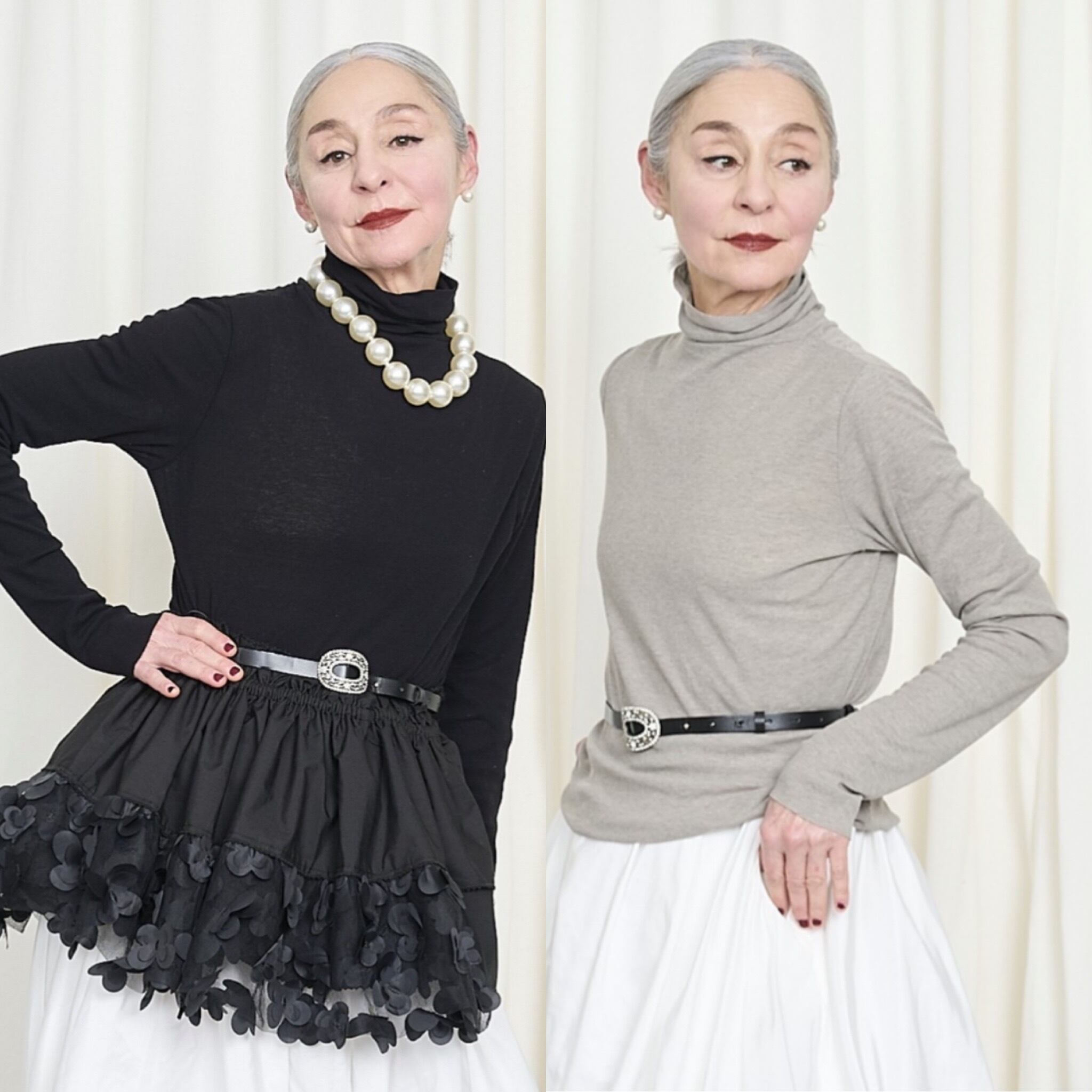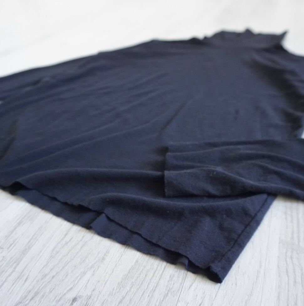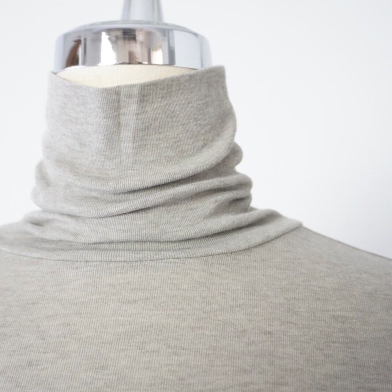 以前も出している超人気のコットン素材のシンプルカットソー。今回はタートルネックをデザインしました。ぱっと見は全くプレーンなタートルカットソーですが、この素材の良さは計り知れないくらいの満足度があります。100%コットンですが、ものすごいストレッチが効いていて、着ているのを忘れるくらいノンストレスです。柔らかく、とても細い糸で編んでいます。肌に触れているか分からないくらいの気持ちいいタッチで、肌触りがとてもよく伸びがあるので着心地が良いのが人気の秘密です。今回はタートルにしてリリースします。袖は長めになっています。高身長の方にもとてもお勧めです。秋冬のウールの下に着ると重宝するかなと思いました。小さく見えて、かなり大きめのパターンになっていますが、着ると痩せ形の方もよく馴染む形になっています。ふっくらした方から、痩せ形の方まで、大きくカバーリングするパターンがよく出来ています。年間を通して心地よいインナーをお探しの方に、とてもお勧めのタートルです。一度着てしまうと病みつきになる心地よさです。