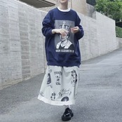 今回はオーバーサイズのトップスやスウェットなどに合わせたくて、やや広がりのあるスカートの裾幅にしています。