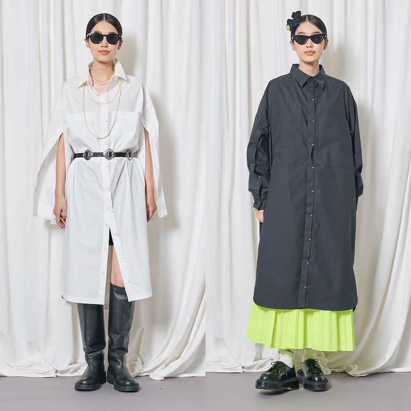 オーバーサイズのシャツドレス。ホワイトとブラック。