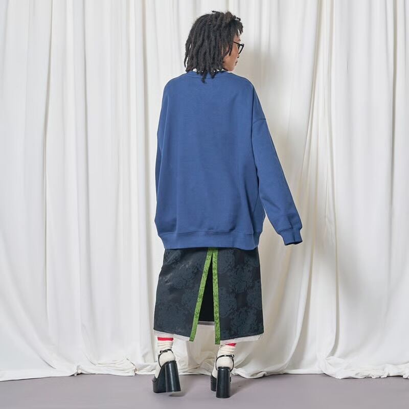 生地は裏毛(パイル地)春秋冬に向いているオールマイティーな素材にしました。耐久性があり、長くずっと着る事ができる素材にしています。トーマスマグパイのスウェットは長年定評があり、コレクションのアイテムの中でも非常に人気の販売シェア率を誇っています。首周りは、今回、大きめ。インナーにTシャツや、襟付きのシャツなどを入れるとバランスが良くなります。私はクルーネックのスウェットには、シャツかTシャツを入れるのを好みます。