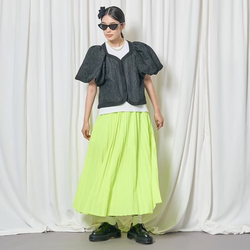 お勧めはブラック。とにかくこれは合わないんじゃないかな?と思うインナーにも、意外と楽しく、良いコーディネートが出来上がりました。パフスリーブがお好きな方はチャレンジしてみてください。