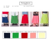 36サイズは着丈80cm、38サイズは着丈85cmです。ウエストはゴムですが、非常に細く柔らかいので、着丈で選んでもらった方が良さそうです。38サイズの方が蹴回しがあり、大きめに広がりが出ます。
