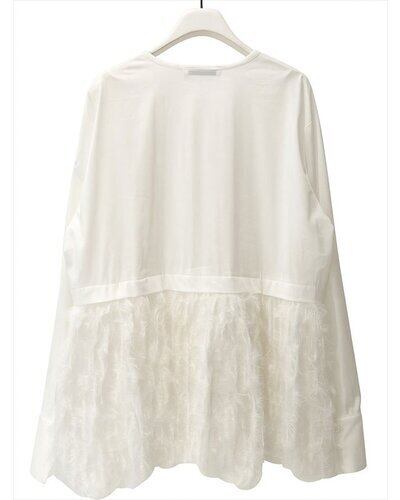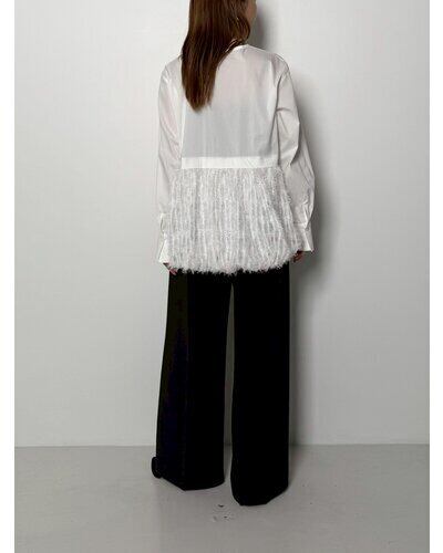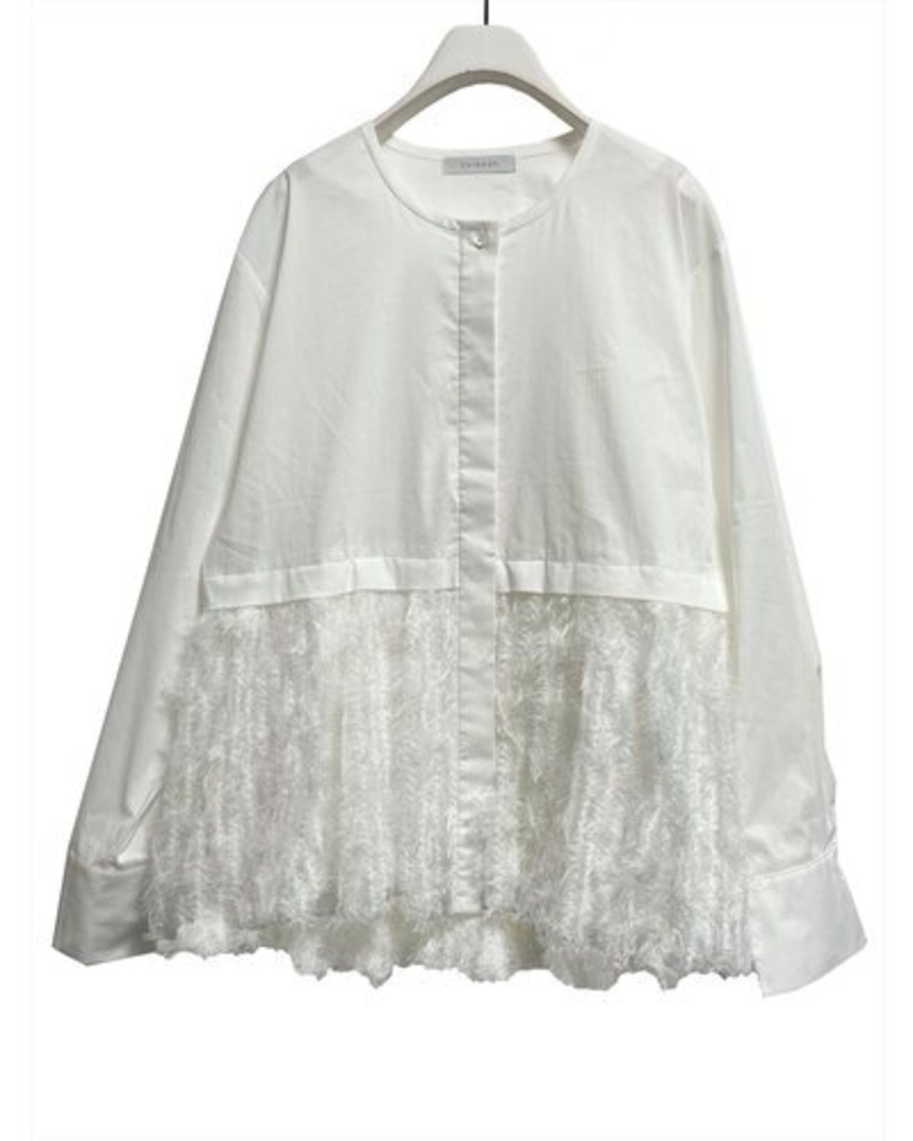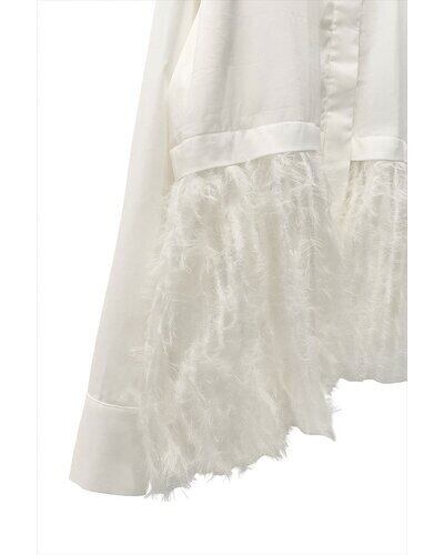 毛足のあるファー素材を裾に切り替えた、華やかなデザインシャツ。