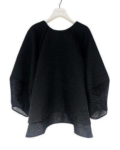 繊細なジャカード生地と、軽やかなオーガンジーを組み合わせた華やかなドッキングブラウス。
