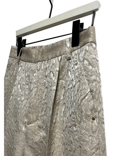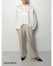 程よいはり感のある花柄のジャガード素材を使用したパンツ。すっきりとしたストレートシルエットのパンツは、タックからセンタープレスをいれることで、縦長効果でスタイアップの効果があります。