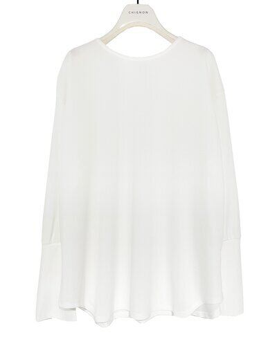 キレイ目な布帛ブラウスに見える素材ですが、カットソーのジョーゼットなので着心地も良く、お洗濯もしやすいです。CHIGNONで定番的に人気なかたちを、今シーズンのサイズ感にアップデートしています。