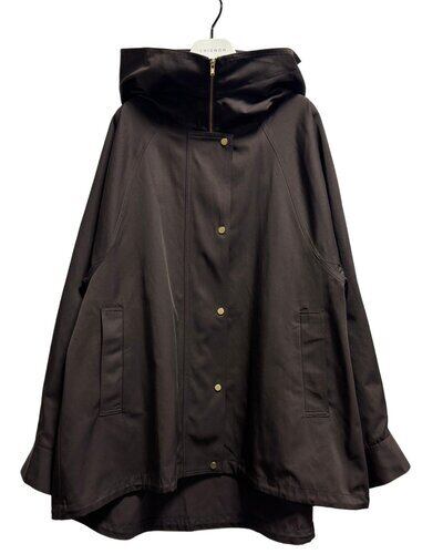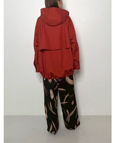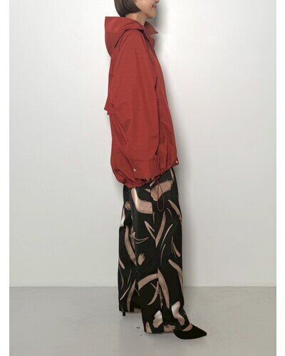 後ろにボリュームを持たせたAラインのシルエットで、裾のドロストコードでバルーンシルエットにすることが可能です。