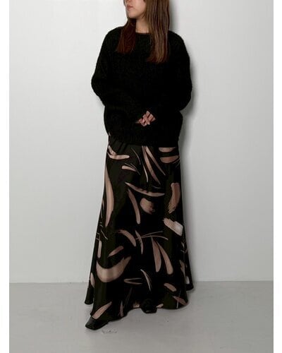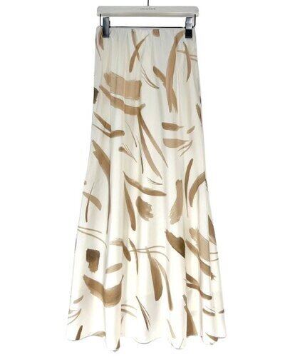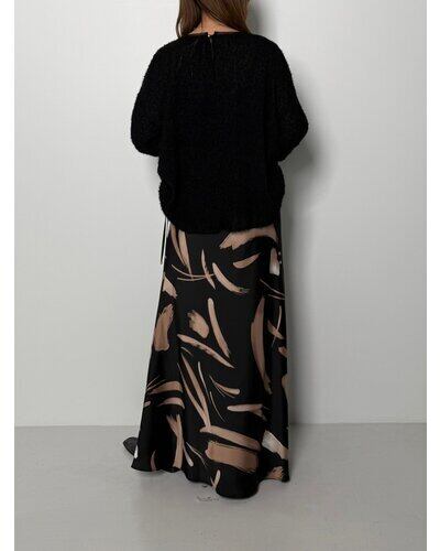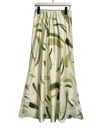 手書き風の大判な抽象柄が目を引く、サテンバイアススカートです。