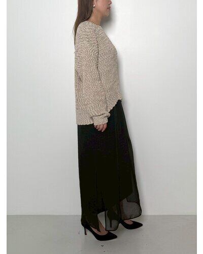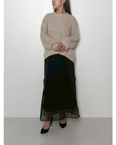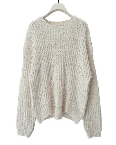 ぽこぽこふんわりした糸が特徴のニットPO。思わず触りたくなるほど肌ざわりがよく、軽いですが保温性は抜群。3Gでざっくりと編みあげたルーズ感と重い印象にしない絶妙な丈がポイント。