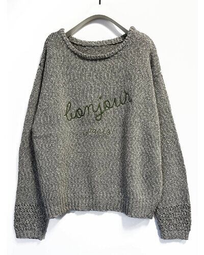 ”BONJOUR”ロゴがトレンド感をもたらしてくれるコットンニットプルオーバー。