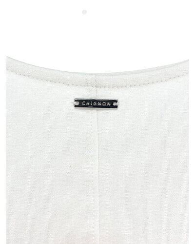 後ろの衿もとにCHIGNONのゴールドロゴプレートが付いています。
