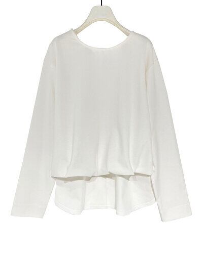 通常のカットソーを実際にタックインするよりも、ウエストまわりがふんわりカバーされるので
