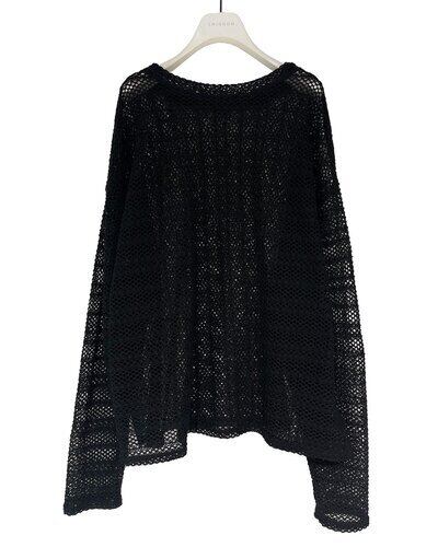 かぎ針編みのような目を引く華やかなレースを使用しているので、コーディネートのポイントになる着映えする一枚です。