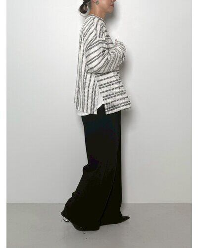 前後で着用頂ける、2WAY仕様のシアーボーダートップスです。