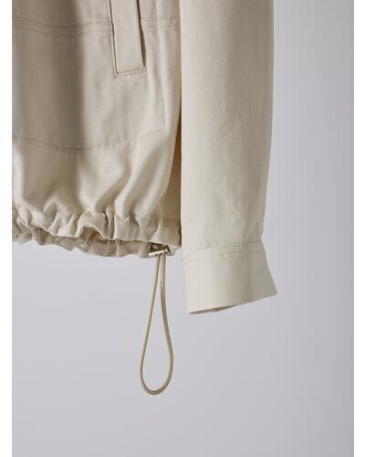 両脇にはドロストコードがあり、紐を伸ばしたり、縮めたりすることでシルエットをアレンジすることもできるアイテムです