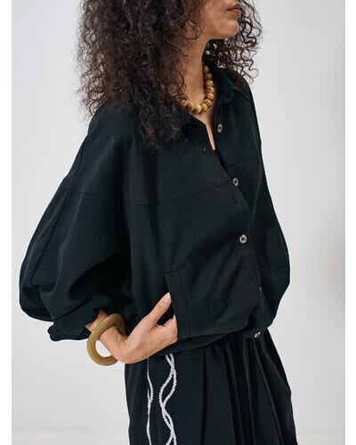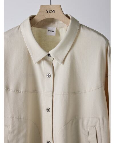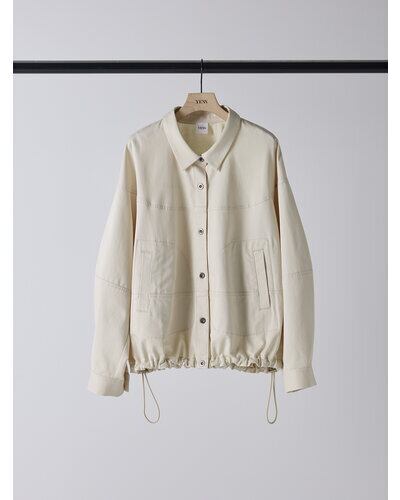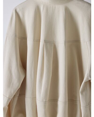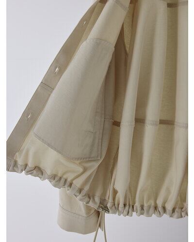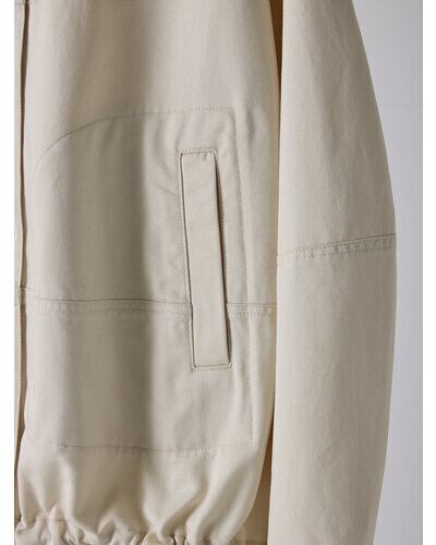丸い切替線が特徴的な、ボリュームたっぷりのブルゾン。ブルゾンですが、シャツディテールを採用しているので、軽やかな印象に。身頃や袖に立体的に形が出るように作られているので、着用した時にコロンと丸いシルエットが女性らしい印象を演出してくれます。
