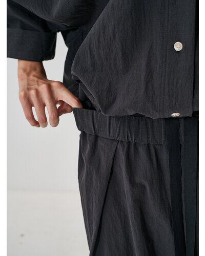 同素材のROUND FORM SHIRTと合わせたセットアップの着こなしもおすすめです。