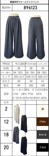 予約販売【 ayane 】接結天竺ウォームワイドパンツ (896123) 12月上旬頃お届け