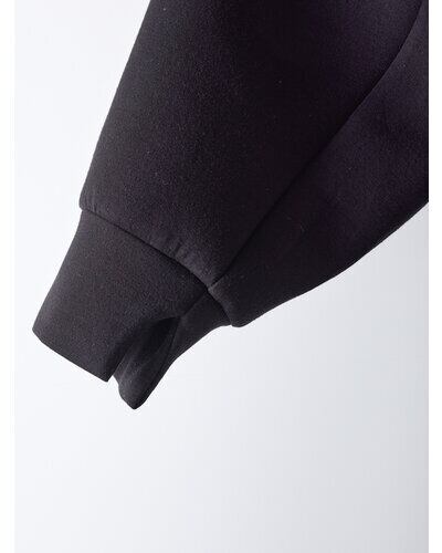 モードな印象に仕上げました。しっかりとした肉感ながら生地の特性上重くなりすぎず、ボリュームがありながらも軽やかに着用いただけます。白の配色でナチュラルな質感の釦や、袖口のスリットあきなど、こだわりの詰まったおすすめアウターです。