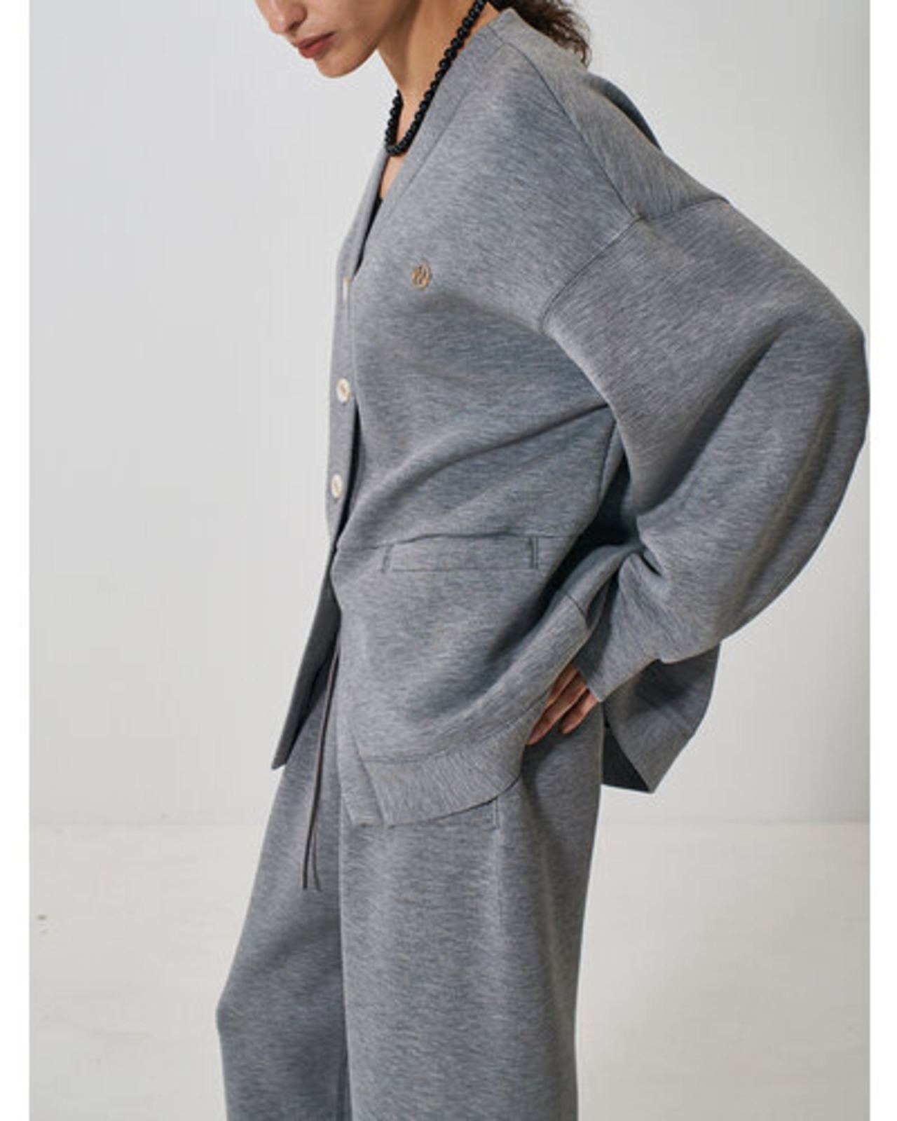 もちっとした弾力のあるダンボール生地を使用したカーディガン型アウターです。