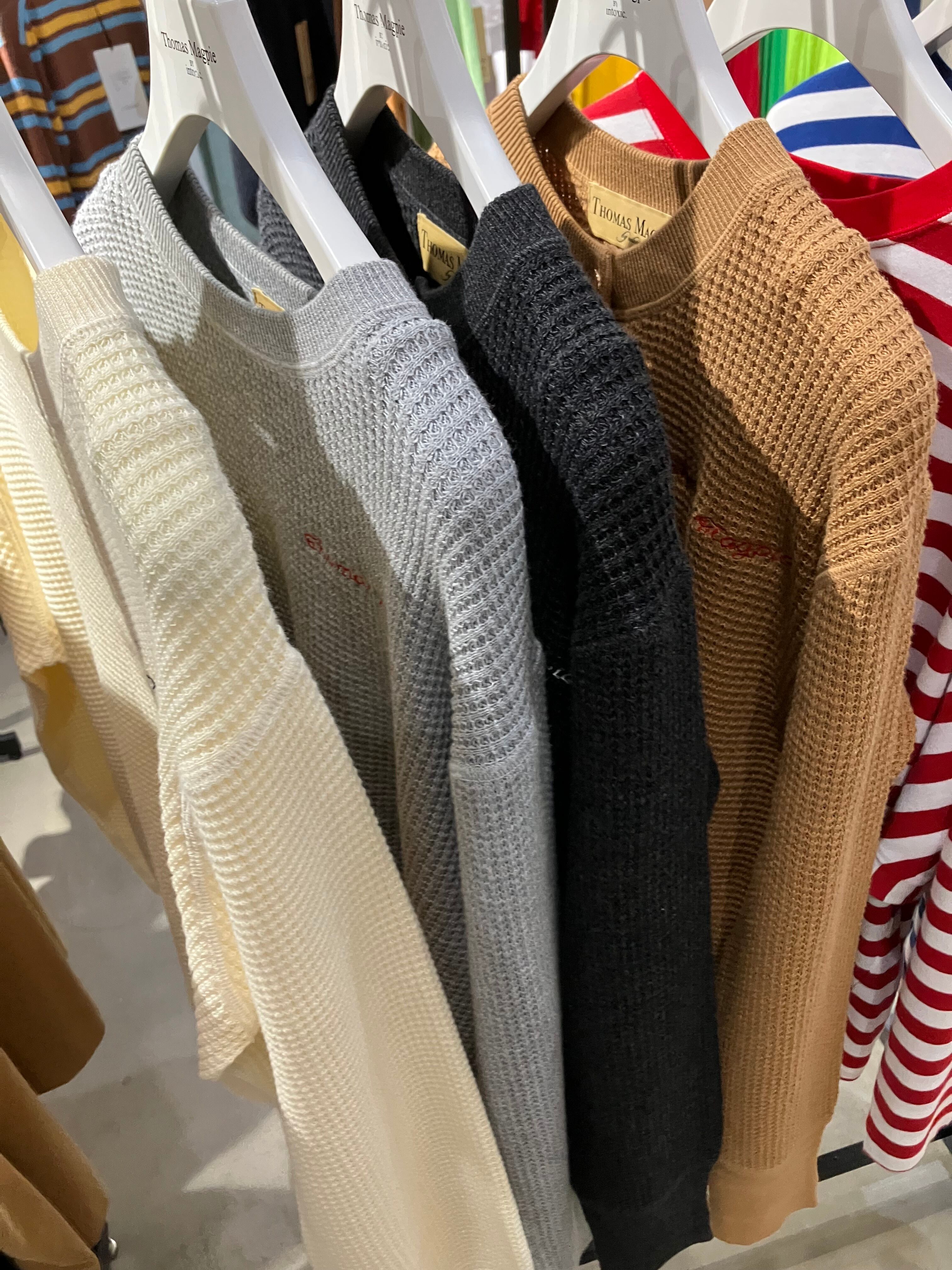 プルオーバー共に柔らかく着心地良いワッフル編みのニットです。