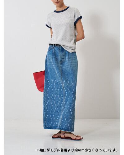 通常の糸と比較して格段に毛羽が少なく、シルクのような光沢や滑らかさがでるというのが特徴のコンパクトヤーンを使用したリブ生地を採用、上品な滑らかさのあるコットンリブは肌さわりも良くおすすめです。 タンクトップを1枚で着るのに抵抗がある大人のための、肩周りを包んで隠してくれる、すっきりとしたシルエットのTシャツです。 程よく体に沿うようにデザインされているので、レイヤードのインナーにも最適です。 後衿ぐりに施したワンポイント刺繍もほどよいアクセントに。 衿と袖口に配色バインダーを施した、新色2色が追加されています。