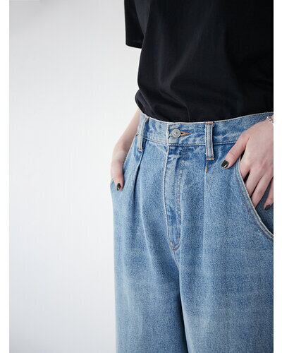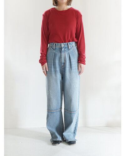 メンズライクな13.2オンスデニムを使用したワイドパンツです。