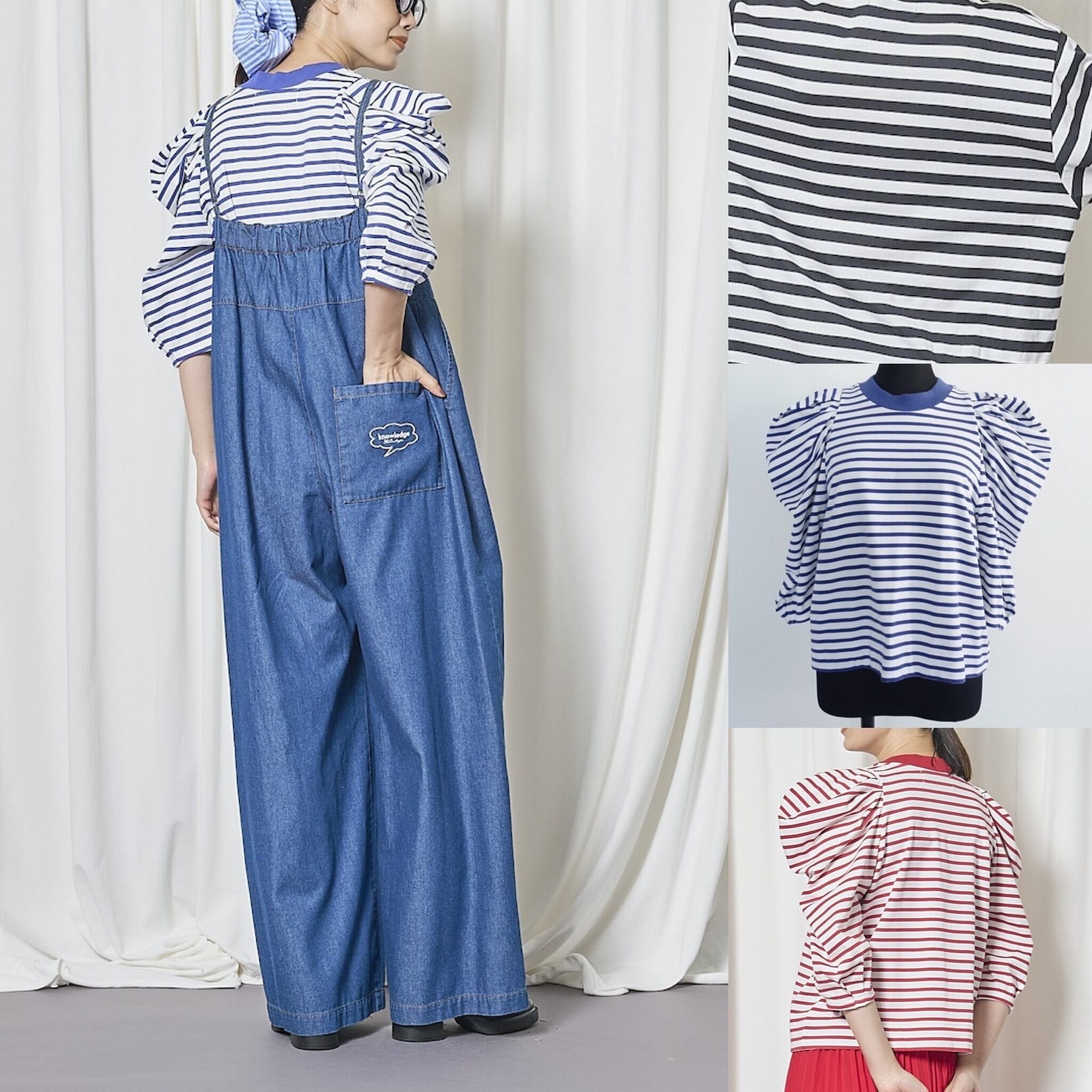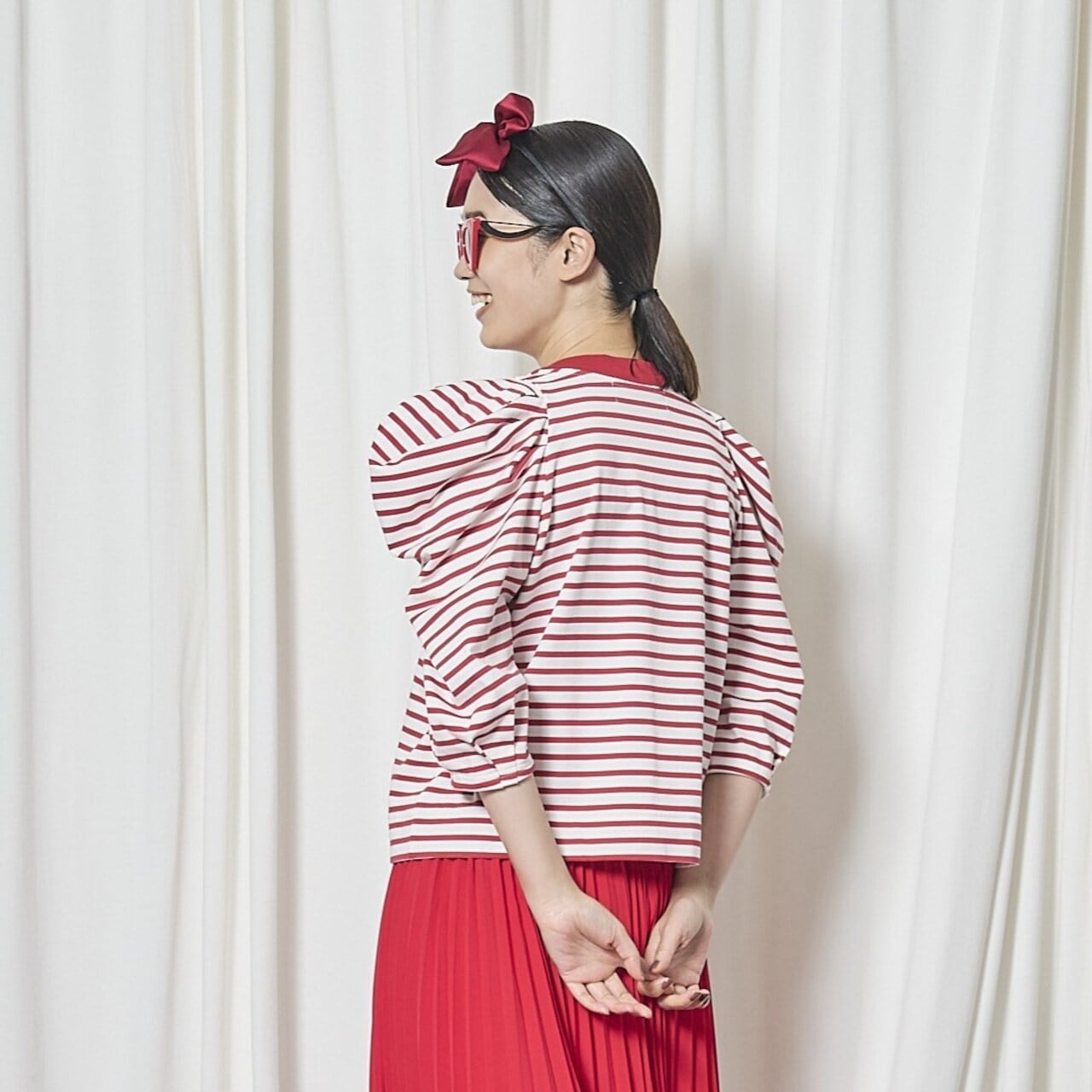 予約販売【 THOMAS MAGPIE 】boarder puff sleeve (2261804) 2月お届け