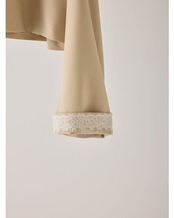 ワイドスリーブの袖口を折り返すとレースが覗く仕様で、ほんのりフェミニンなスパイスを。