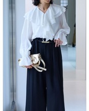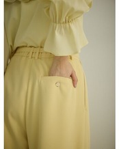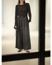 共布ベルトをタック奥に通した立体的なデザインで、シンプルながらも一枚でコーデが決まるワイドパンツ。