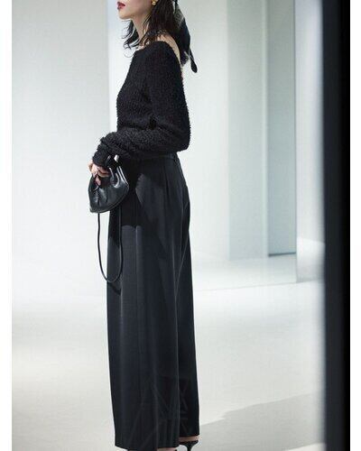 後ろのネックラインを大きく開けることで、ヘルシーな肌見せを叶え、大人の抜け感をプラスしました。